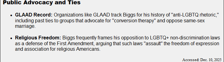 family". In 2020, Biggs joined Representative